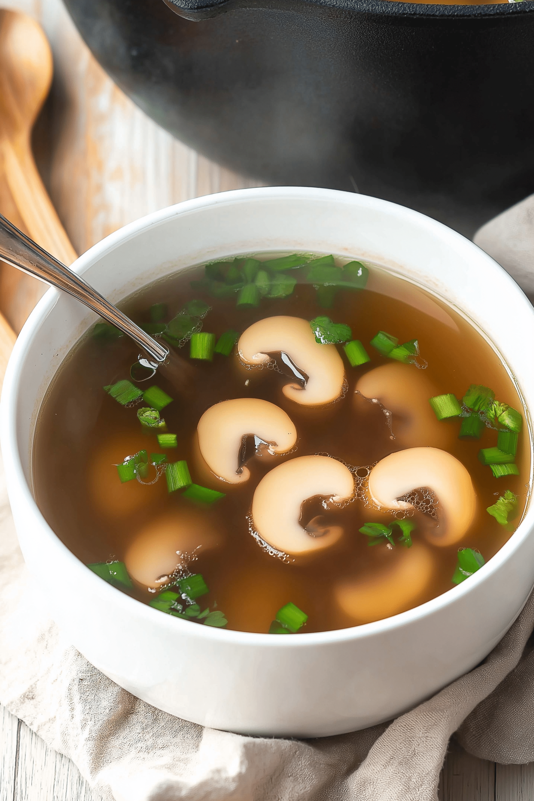 Hibachi-Style Clear Soup: Add thin slices of onion and garlic, and simmer longer for deeper flavor