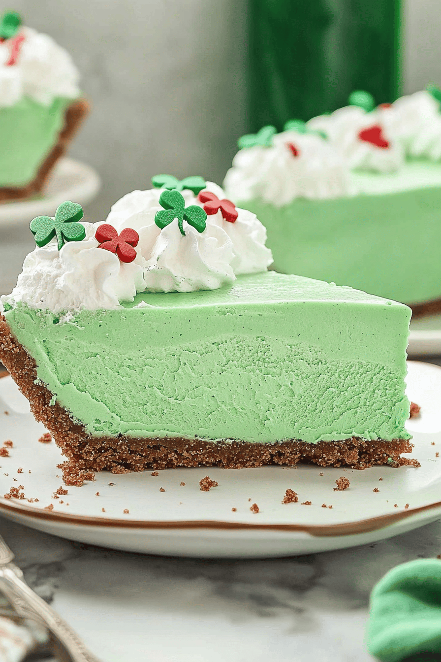 This shamrock shake pie is so versatile, it can be the star of the show or a delightful accompaniment. For BREAKFAST, though I know it sounds decadent, a small slice alongside a strong cup of coffee is surprisingly divine. The minty freshness cuts through the richness of the coffee beautifully. For BRUNCH, it’s a showstopper. Serve it alongside some fresh fruit salad, maybe some mini quiches, or even some Fluffy Pancakes. The vibrant green color adds a festive touch that’s perfect for spring gatherings. AS DESSERT, it’s a winner every time. It’s lighter than a heavy chocolate cake, making it a great palate cleanser after a rich meal. Pair it with some fresh berries or a drizzle of chocolate sauce for an extra indulgence. And for COZY SNACKS? Absolutely! Cut it into small squares for an afternoon pick-me-up or a sweet treat to enjoy with a good book and a glass of milk. My kids also love it crumbled up a bit and served in small glasses with whipped cream and sprinkles as “dessert parfaits.” It’s a fun twist that feels extra special to them. Honestly, any time you’re craving something sweet, refreshing, and a little bit fun, this pie delivers!